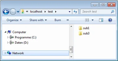 Finally we check again in Explorer, and voilà, the directory sub2 is gone: