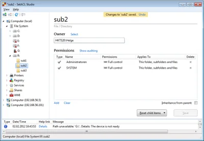 Next we remove permissions on one of the subfolders so that users do not have read access any more. We do that with SetACL Studio, of course!
