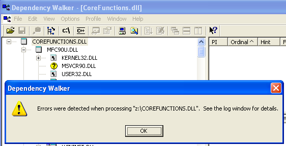 Note: CoreFunctions.dll is one of the DLLs of our product. It is dependent on the Visual C runtime files (including msvcr90.dll) and msvcr90.dll is located in the subfolder Microsoft.VC90.CRT as described in this article. But still, msvcr90.dll is not found by the OS loader.