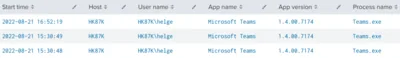 If you’ve made it this far, you have all the techniques for advanced Microsoft Teams application startup and usage analytics. A typical use case would be to determine the number of application starts along with the application startup duration. The following Splunk searches show how to collect that information based on the third technique presented above. It should not be difficult to adjust the searches to the other MS Teams application identification techniques.