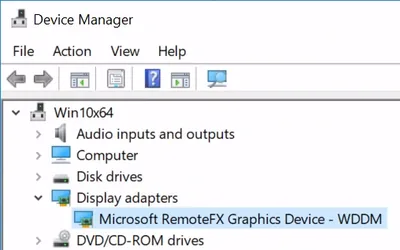 With the above steps completed, you will see a virtual GPU in the VM (Microsoft RemoteFX Graphics Device - WDDM):
