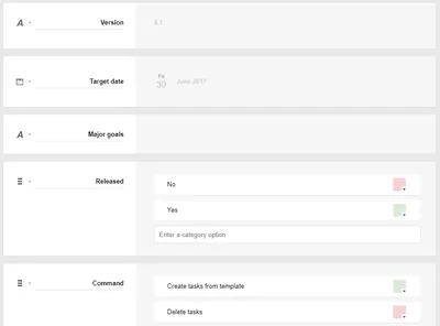 The place where we need the checklist is in our Releases Podio app. Its fields look as follows: