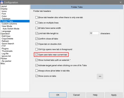 In the Folder Tabs section, tell Total Commander to open new tabs directly next to the current tab. I find the user experience of this variant almost always superior to new tabs appearing at the far right end of the list of tabs.