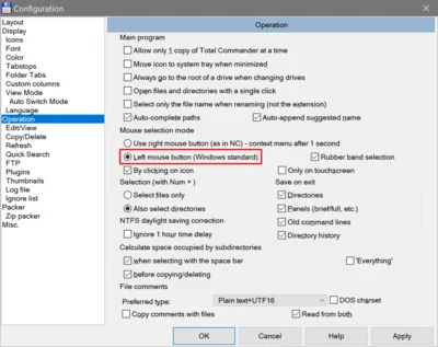 In the Operation section, change the mouse selection mode (which defines how you can select items with the mouse) to the Windows standard.