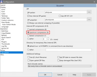 In the Zip Packer section, configure the ZIP packer to use maximum compression (why would you not?).