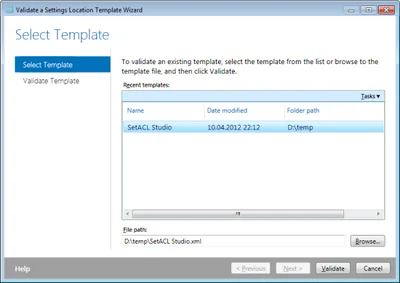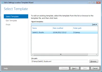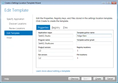 Generator creates templates by starting and monitoring an application. I browsed for the path to SetACL Studio:
