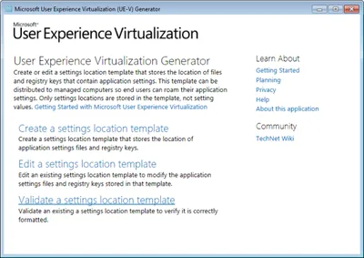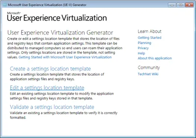 As explained in my review, a UE-V template is an XML file. As such, a text editor is sufficient for template creation. The process is much more comfortable with Microsoft’s Generator tool, though. It can be installed independently of the UE-V agent. Just run ToolsSetup.exe from the download package. After clicking through the MSI you will find it in the Start Menu under the name Microsoft User Experience Virtualization Generator.