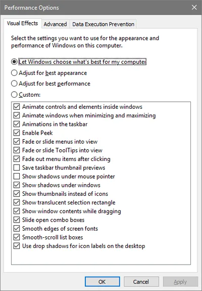 An easy manual workaround to get the lock screen to display images again is to open the Performance Options dialog shown above on the Visual Effects tab, change any setting (without saving), reverting it back and clicking OK. That overwrites the settings modified by Citrix Receiver’s Connection Center and the lock screen image is back.